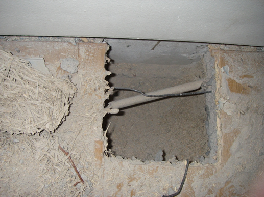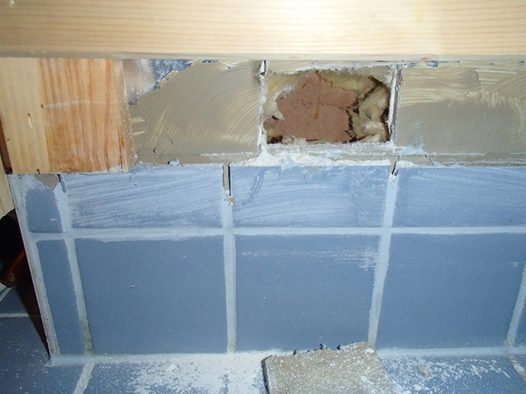 Pesuhuoneen kosteusvaurio väliseinän sisällä | |