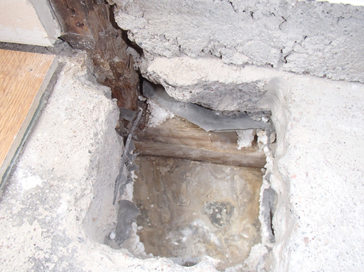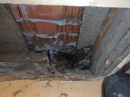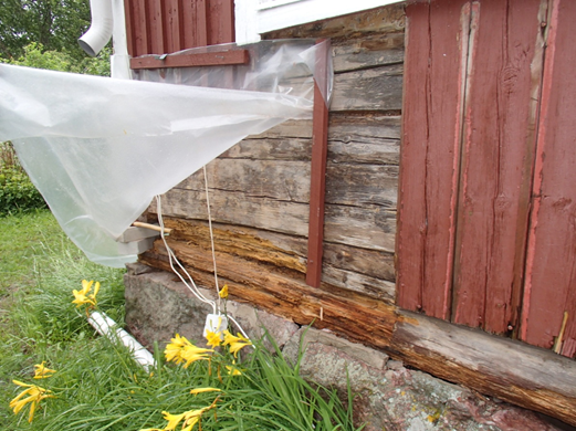 Piilosokkeli/valesokkeli rakenteessa seinän alajuoksupuu lahonnut | |